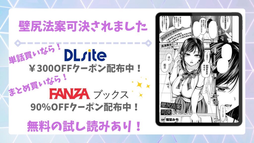 漫画『壁尻法案可決されました』(作者:種梨みや)をお得に読む方法をまとめていきますね♪